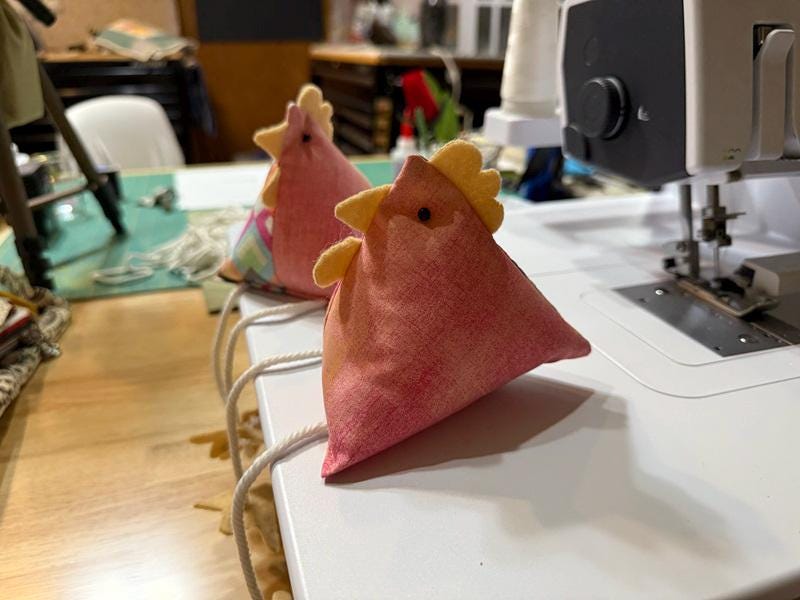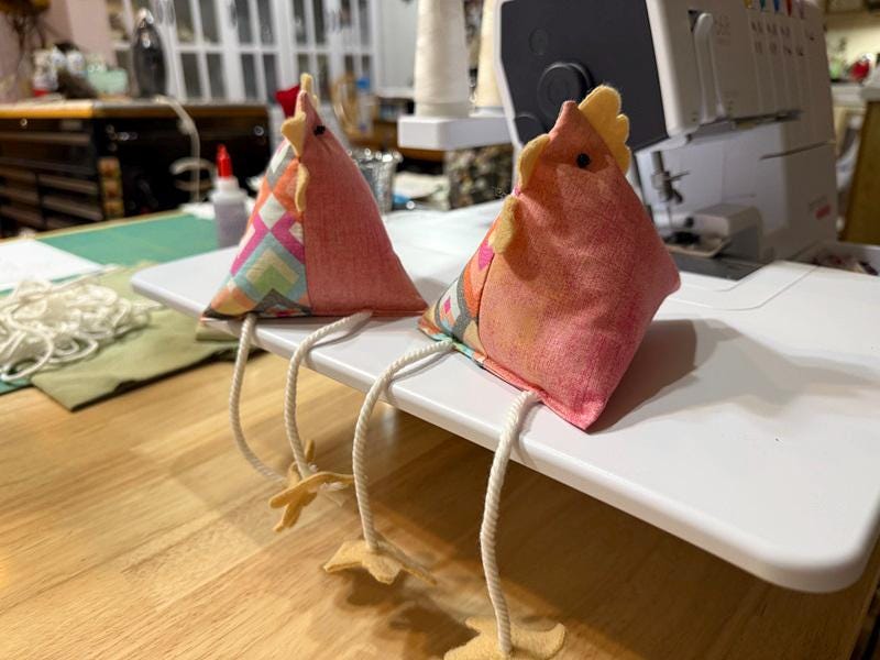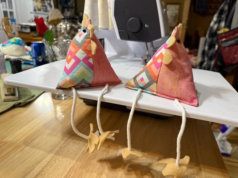 I have seen these on youtube and on pinterest and they sure seem popular... here are some photos of my chicks and the pattern for the chick features in case you want to make one for your self...
